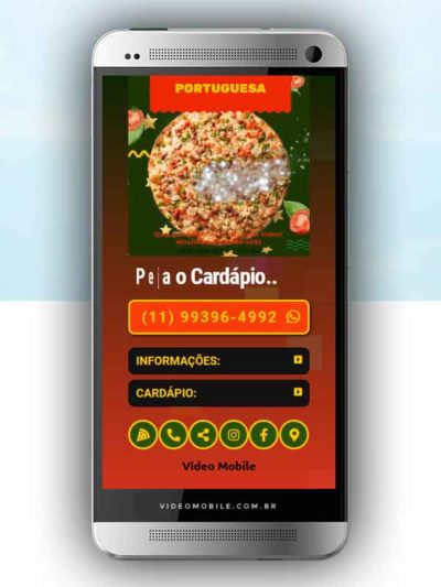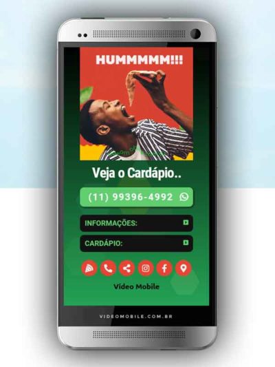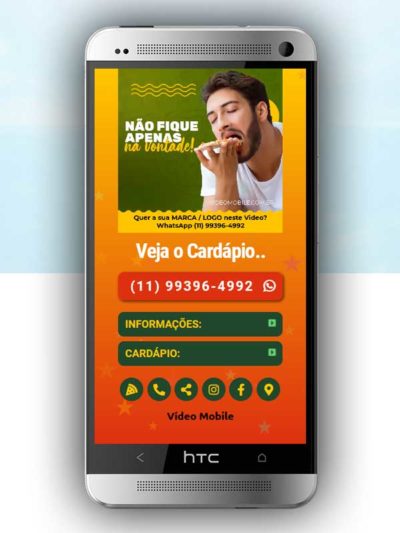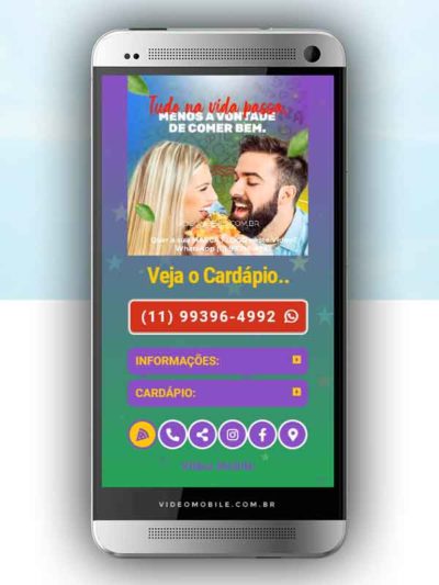 - Vídeo com botões clicáveis no celular para mostrar o CARDÁPIO e fazer PEDIDO pelo WHATSAPP. Possui ícones para o Instagram, Facebook, Pedido pelo Ifood, Google Maps para chegar ao local pelo GPS, botão de ligar para pedir por telefone e botão para o cliente compartilhar com sua lista de amigos do WhatsApp. BONUS: Ganha versão do vídeo para Status WhatsApp.…