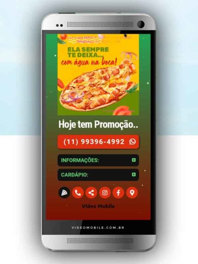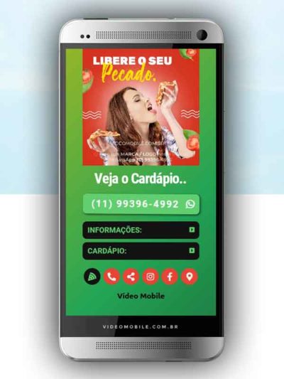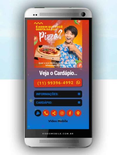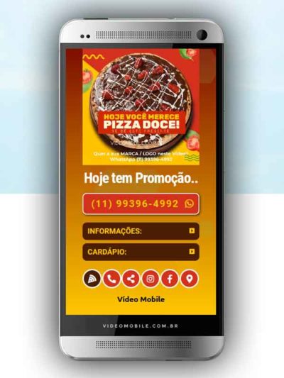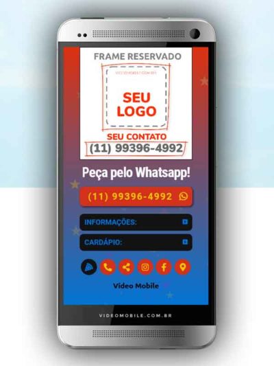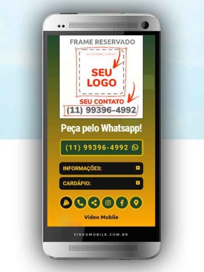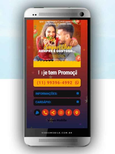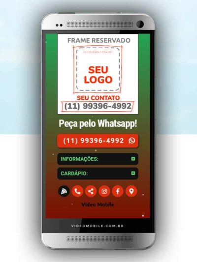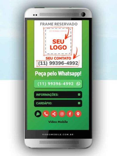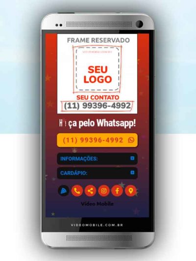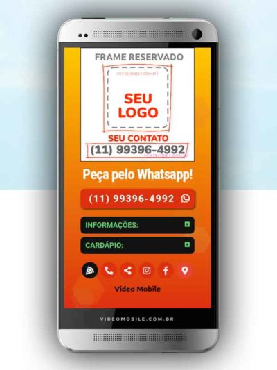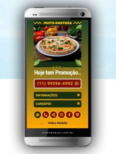 - Vídeo com botões clicáveis no celular para mostrar o cardápio e fazer pedido pelo WhatsApp. Possui ícones para o Instagram, Facebook, Pedido pelo Ifood, Google Maps para chegar ao local pelo GPS, botão de ligar para pedir por telefone e botão para o cliente compartilhar com sua lista de amigos do WhatsApp. BONUS: Ganha versão do vídeo para Status WhatsApp.…