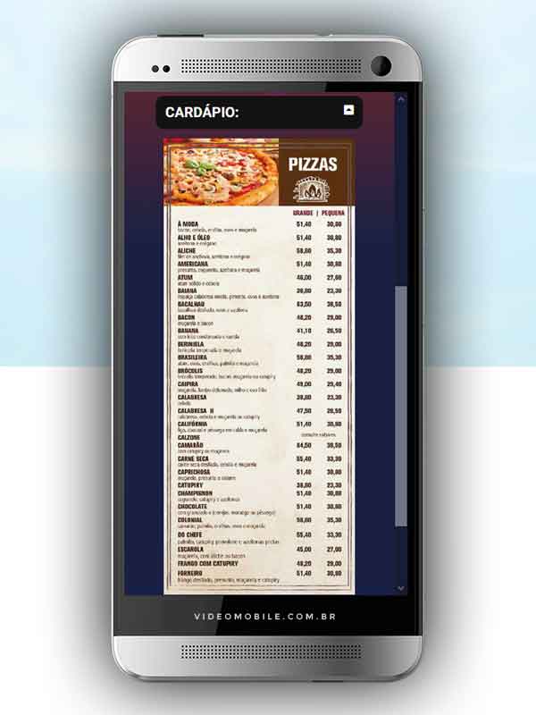 BOTÃO CARDÁPIO: Aqui esta a imagem digitalizada (scaneada) de um panfleto com cardápio genérioco para fins de demosntração apenas. Esta imagem que deverá ser fornecida pelo responsável pelo teor da mesma.
