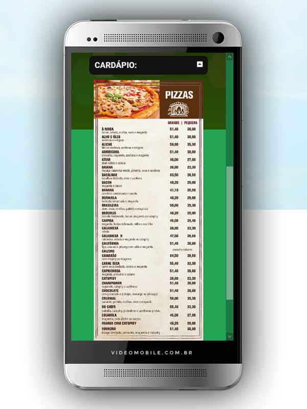 BOTÃO CARDÁPIO: Aqui esta a imagem digitalizada (scaneada) de um panfleto com cardápio genérioco para fins de demosntração apenas. Esta imagem que deverá ser fornecida pelo responsável pelo teor da mesma.
